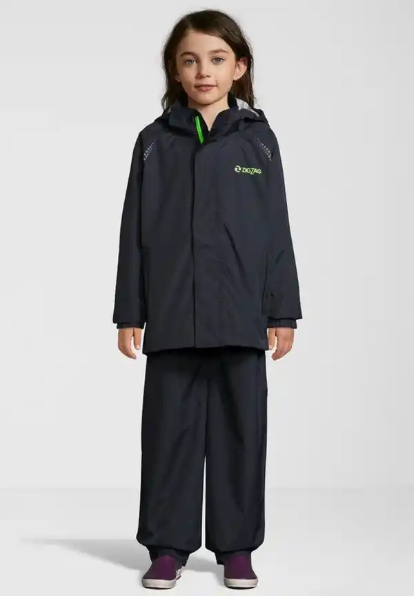 Macht Regentage besser! Entwickelt nach dem Motto „es gibt kein schlechtes Wetter, sondern nur die falsche Bekleidung“. Mit dem atmungsaktiven Regenanzug für Kinder von ZIGZAG kannst Du jedem schlechten Wetter trotzen. Der komfortable Kinderschnitt und das schicke und schlichte Design in tollen Farbtönen lassen sich einfach kombinieren. Das Regen-Set kann auch für den Schulweg als Schutz über die normale Kinderkleidung angezogen werden.