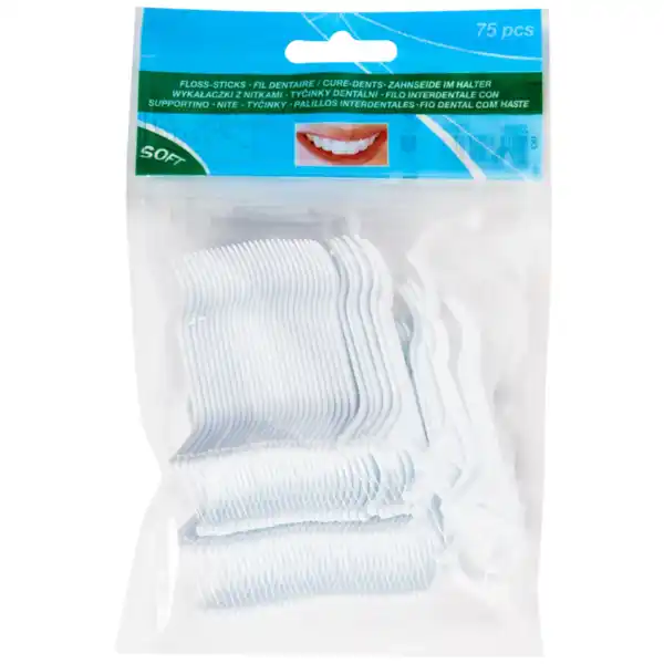 Material: Plastik/kunststoff, Nylon, Art Hilfsmittel für Mundpflege: Flosser, Zahnstocher, Für Art Gebiss: Erwachsenengebiss, Menge: 75 Stück, Artikelnummer: 2202548