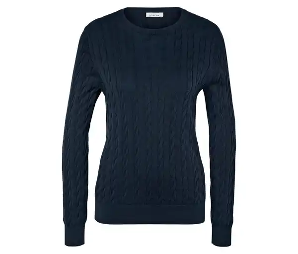 Zopfstrickpullover, dunkelblau Farbe: Dunkelblau Material: 60% Baumwolle (Unterstützt die Initiative Cotton made in Africa), 40% Polyester Maße: Gesamtlänge ca. 64 cm (Gr. M 40/42) Passform: Regular Fit Weiche Qualität mit BaumwolleElastische Rippbündchen an Ausschnitt, Ärmelabschluss und SaumGanzflächiges ZopfstrickmusterRundhalsausschnittUnterstützt die Initiative Cotton made in AfricaDieser Pullover unterstützt die Farmer*innen.