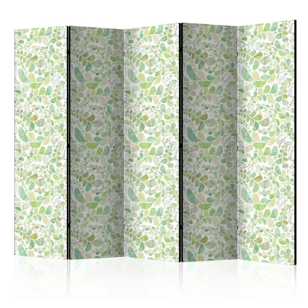 artgeist Paravent, Weiß, Hellgrün, Holz, Textil, Kiefer, massiv, Blätter, 225x172x3 cm, Motiv auf Vorder- und Rückseite, Wohnzimmer, Raumteiler & Paravents, Paravents