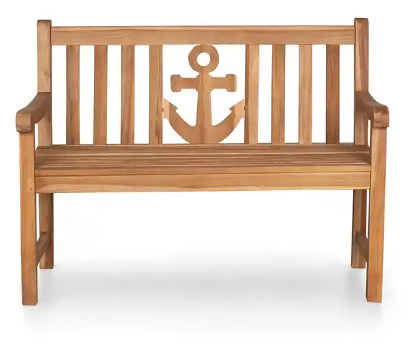 deVries Teak-Gartenbank »Anker« Farbe: Teak naturfarben Material: Teakholz Maße: B x H x T ca. 120 x 89 x 60 cm Sitzfläche ca. 109 x 48 cm Sitzhöhe ca. 46 cm Armlehnenhöhe ca. 65 cm Rückenlehnehöhe ca. 92 cm Inhalt: Inkl. Montagematerial und -anleitung Gewicht: Ca. 30 kg Tragkraft: Max. 150 kg Sonstige Hinweise: Artikel wird zerlegt geliefert Lieferung in 1 Packstück per Postversand bis zum Haus Keine Inselbelieferung Aus witterungsbeständigem TeakholzVielseitig kombinierbar mit weiteren Elementen der Serie2-sitzer-Bank mit Motiv in der RückenlehneMotiv AnkerUV- und witterungsbeständig