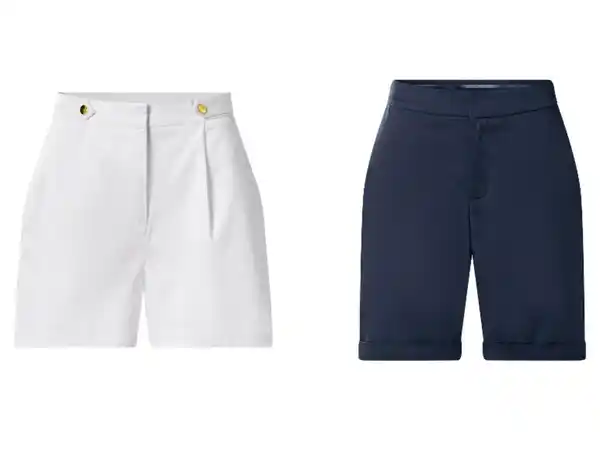 Detail:Bermudas: Teilgummizugbund, Eingrifftaschen und Fake-Gesäßtaschen; Shorts: Eingrifftaschen, angesetzte Bügelfalten und Riegel mit Dekoknöpfen am Bund
