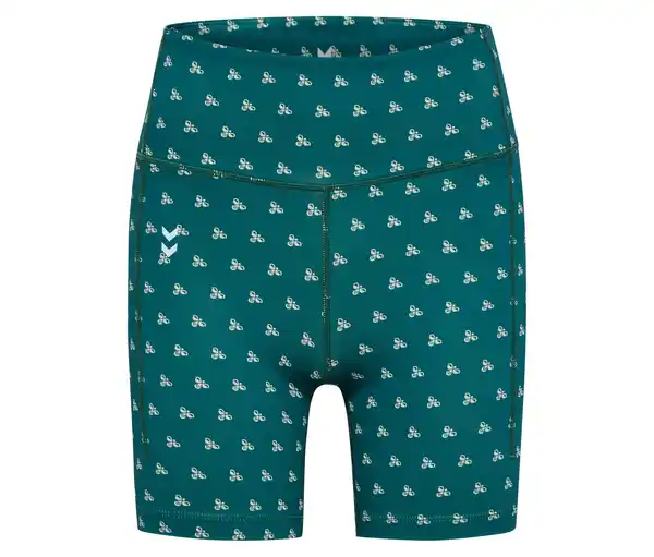 hummel® Damen-Short-Tights Farbe: Dunkelgrün mit weißem Allover-Muster Material: 78% Polyester, 22% Elasthan Passform: Slim Fit HIIT AOP IMPACT HW SHORT TIGHTS aus extradehnbarem Material mit enger, körpernaher Passform für optimale Bewegungsfreiheit und hohen KomfortMit BienenmusterHohe Taille für einen sicheren Sitz