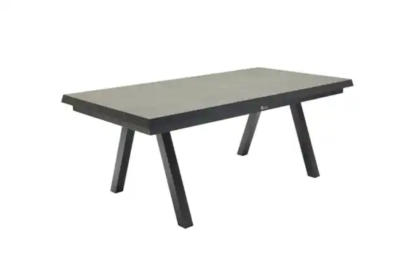 Ausführung mit Tischplatte aus gesintertem Stein in anthrazit, formschönes Aluminiumgestell in Anthrazit, Tischplatte mit mit Synchronauszug,