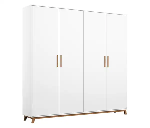 rauch Kleiderschrank »Carlsson« mit Drehtüren, 4-türig Wohnen im skandinavischen Stil Der Kleiderschrank Carlsson von rauch spiegelt den skandinavischen Wohntrend bis ins Detail wider. In schlichtem, aber formvollendetem Design überzeugen die Möbelstücke auf ganzer Linie. Die natürliche, helle und freundliche Atmosphäre wird durch die dominierende, weiße Farbe unterstrichen. Mit formschönen Griffen öffnen Sie die Türen des Kleiderschranks und greifen so optimal auf das Schrankinnere zu. Ausgestattet mit Fachböden und Kleiderstangen, die in der Höhe variabel angeordnet werden können, gestalten Sie den vorhanden Stauraum nach Ihren eigenen Bedürfnissen. Zusätzlich setzen Massiv-Holz sowie die sanft abgerundeten Formen kontraststarke Akzente. Ein breites Spektrum an unterschiedlichen Varianten lassen Ihnen jede Menge Spielraum für die Einrichtung Ihrer vier Wände. Optional kann der Kleiderschrank durch weitere Möbel der Serie Carlsson ergänzt werden. Farbe: Alpinweiß Innen helle Leinenoptik Füße und Griffe Eiche naturfarben Material: Spanplatte und mitteldichte Holzfaserplatte (MDF), lackiert Füße, Griffe und Sockelrahmen Eichen-Massivholz Maße: B x H x T ca. 181 x 203 x 53 cm Inhalt: 4-türiger Schrank mit Massivholzfüßen 4 Fachböden (ca. 90 cm) 1 Kleiderstange (ca. 90cm) Aufbauanleitung Gewicht: Ca. 112 kg Tragkraft: Einlegeböden je max. 10 kg Gebrauchsanweisung: Pflege: Reinigung mit feuchtem Tuch. Keine Verwendung von aggressiven Reinigern. Aufbau zu zweit. Wandbefestigung gegen Umfallen verwenden. Sonstige Hinweise: Artikel wird zerlegt geliefert Lieferung in 5 Packstücken Anlieferung per Spedition bis zur Verwendungsstelle Keine Inselbelieferung Garantiegeber und Hersteller: Rauch Möbelwerke GmbH Wendelin-Rauch-Straße, 97896 Freudenberg am Main directive@rauchmoebel.de Herstellergarantie: 10 Jahre Garantieumfang: gesamter Artikel Räumlicher Geltungsbereich: Deutschland, Österreich Hersteller-Artikel-Nummer: AD134.3502 Skandinavisches Design mit Massivholz-Details4-türigGesamtbreite ca. 180 cm1 Kleiderstange 4 FachbödenFüße, Griffe und Sockelrahmen Eichen-MassivholzGroßzügiges Stauraummöbel für das Schlafzimmer oder das AnkleidezimmerMADE IN GERMANY