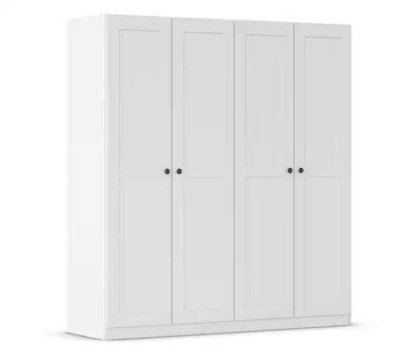 rauch Kleiderschrank »Savona«, 4-türig Material: Spanplatte und mitteldichte Holzfaserplatte, lackiert Maße: B x H x T ca. 181 x 197 x 54 cm Inhalt: Inkl. Montageanleitung Gewicht: Ca. 94 kg Tragkraft: Fachböden je max. 10 kg Kleiderstangen je max. 40 kg Gebrauchsanweisung: Reinigung mit einem trockenen Tuch Wandbefestigung gegen Umfallen verwenden Warnhinweise: Achtung: Sicherheitshinweise auf Montageanleitung beachten Sonstige Hinweise: Artikel wird zerlegt geliefert Lieferung in 4 Packstücken Speditionsartikel B x H x T Packstücke 1x ca. 55 x 8 x 197 cm, 1x ca. 55 x 6 x 204 cm, 2x ca. 47,5 x 5 x 195 cm Gewicht Packstücke 1x ca. 31,5 kg, 1x ca. 38,5 kg, 2x ca. 12 kg 4-türiger Kleiderschrank im modernen LandhausstilZeitloses Weiß für helle, freundliche WohnräumeInnenausstattung: 2 Einlegeböden, 2 KleiderstangenKleiderstangen und Einlegeböden höhenverstellbarErhältlich in weiteren Ausstattungsvarianten für flexible StauraumlösungenIdeal für Schlafzimmer oder AnkleidezimmerEin Element unserer vielseitigen Landhaus-Möbelserie »Savona«100% Made in Germany und ausgezeichnet mit dem Blauen Engel sowie dem Goldenen M